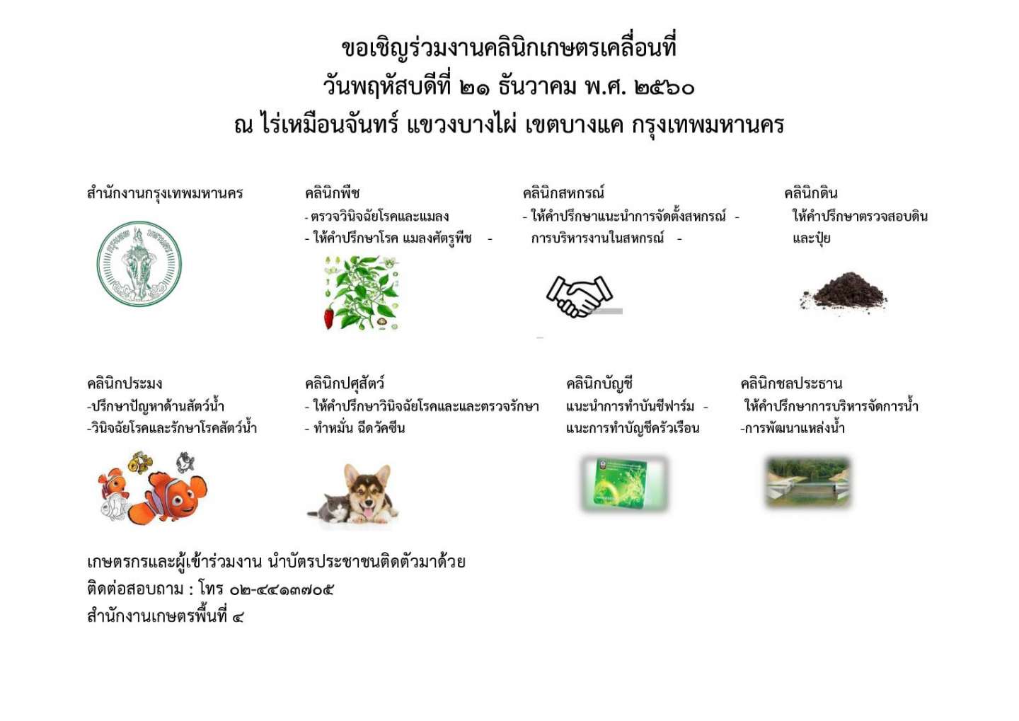 ขอเชิญร่วมงาน คลินิกเกษตรเคลื่อนที่