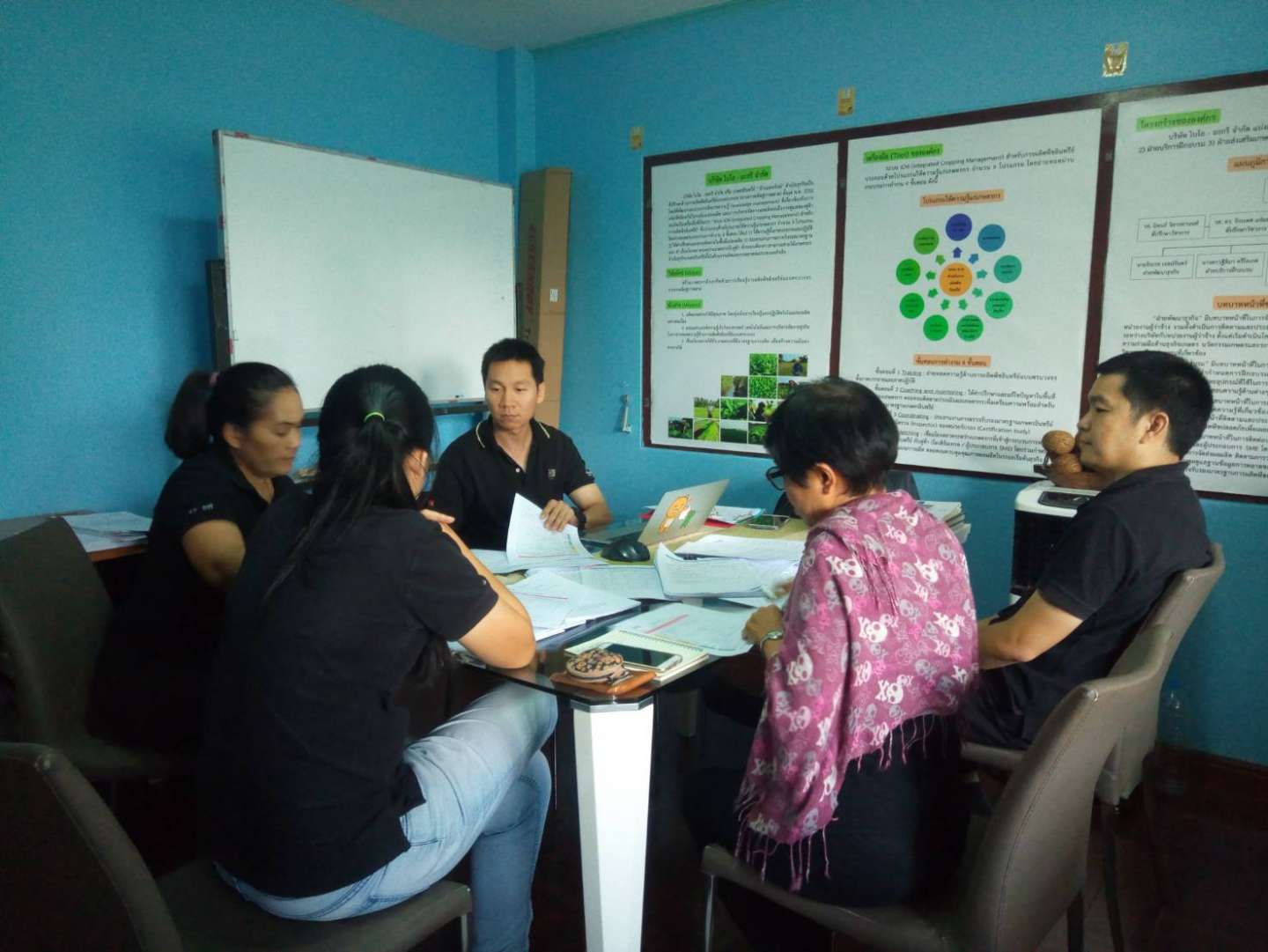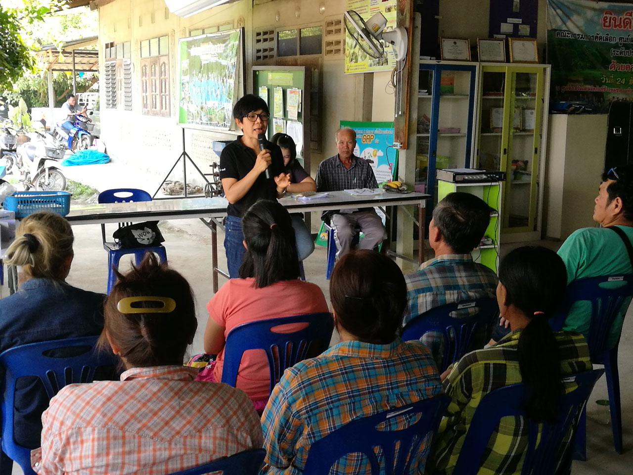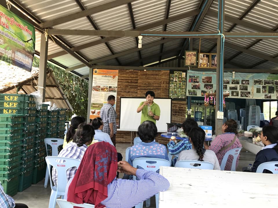 อบรมเรื่องการผลิต การใช้ปัจจัยการผลิต การผลิตไส้เดือนฝอย การทำสารสกัดพืช การเตรียมความพร้อมการขอมาตราฐานเกษตรอินทรีย์