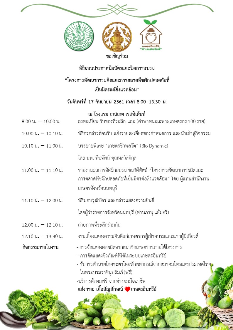 พิธีมอบประกาศนียบัตรและปิดการอบรมโครงการพัฒนาการผลิตและการตลาดพืชปลอดภัยที่เป็นมิตรต่อสิ่งแวดล้อม