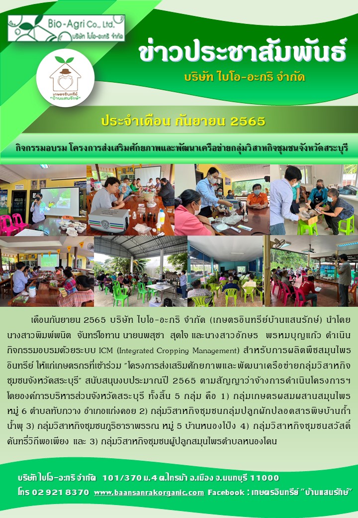 SGS Thailand ตรวจรับรองมาตรฐาน ISO 29990: 2010 ครั้งที่ 2 ให้กับเกษตรอินทรีย์ "บ้านแสนรักษ์"