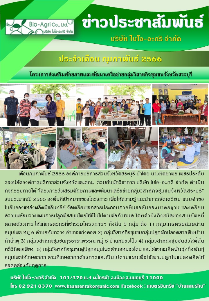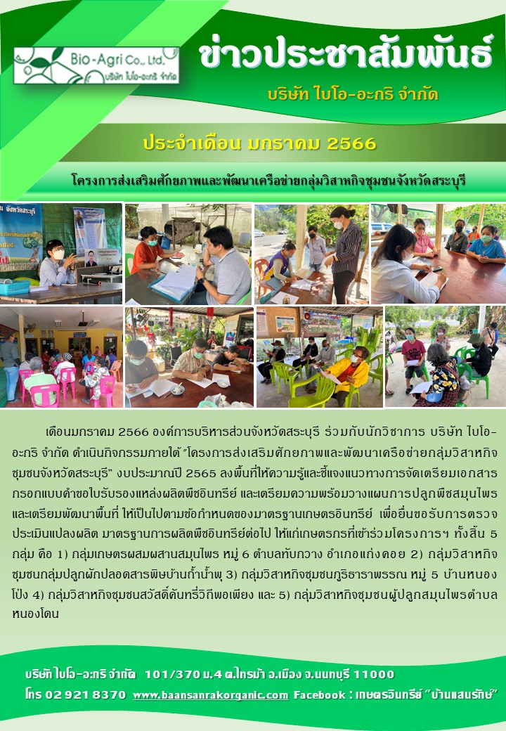 ประสานขอการรับรองมาตรฐาน Organic Thailand โครงการส่งเสริมศักยภาพและพัฒนาเครือข่ายกลุ่มวิสาหกิจชุมชนจังหวัดสระบุรี